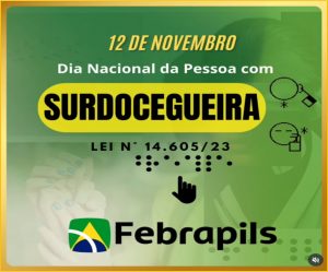 O Dia Nacional da Pessoa com Surdocegueira, celebrado anualmente em 12 de novembro e instituído por meio da Lei nº 14.605/2023, visa ao desenvolvimento de conteúdos para conscientizar a sociedade brasileira sobre as necessidades específicas de organização e de políticas públicas para promover a inclusão social desse segmento populacional, e para combater o preconceito e a discriminação. A referida Lei reconhece a surdocegueira como condição de deficiência única.