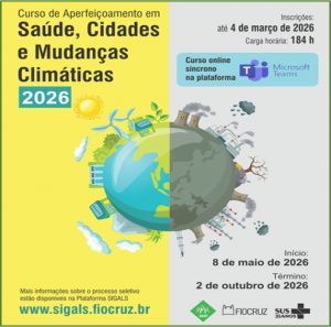 A Fiocruz está com inscrições abertas, até 4 de março, para o Curso de Aperfeiçoamento em Saúde, Cidades e Mudanças Climáticas, com início previsto para maio de 2026. A formação tem como objetivo qualificar profissionais para avaliar os impactos das mudanças climáticas na saúde e nos territórios urbanos, além de estimular o desenvolvimento de soluções voltadas à adaptação das cidades.